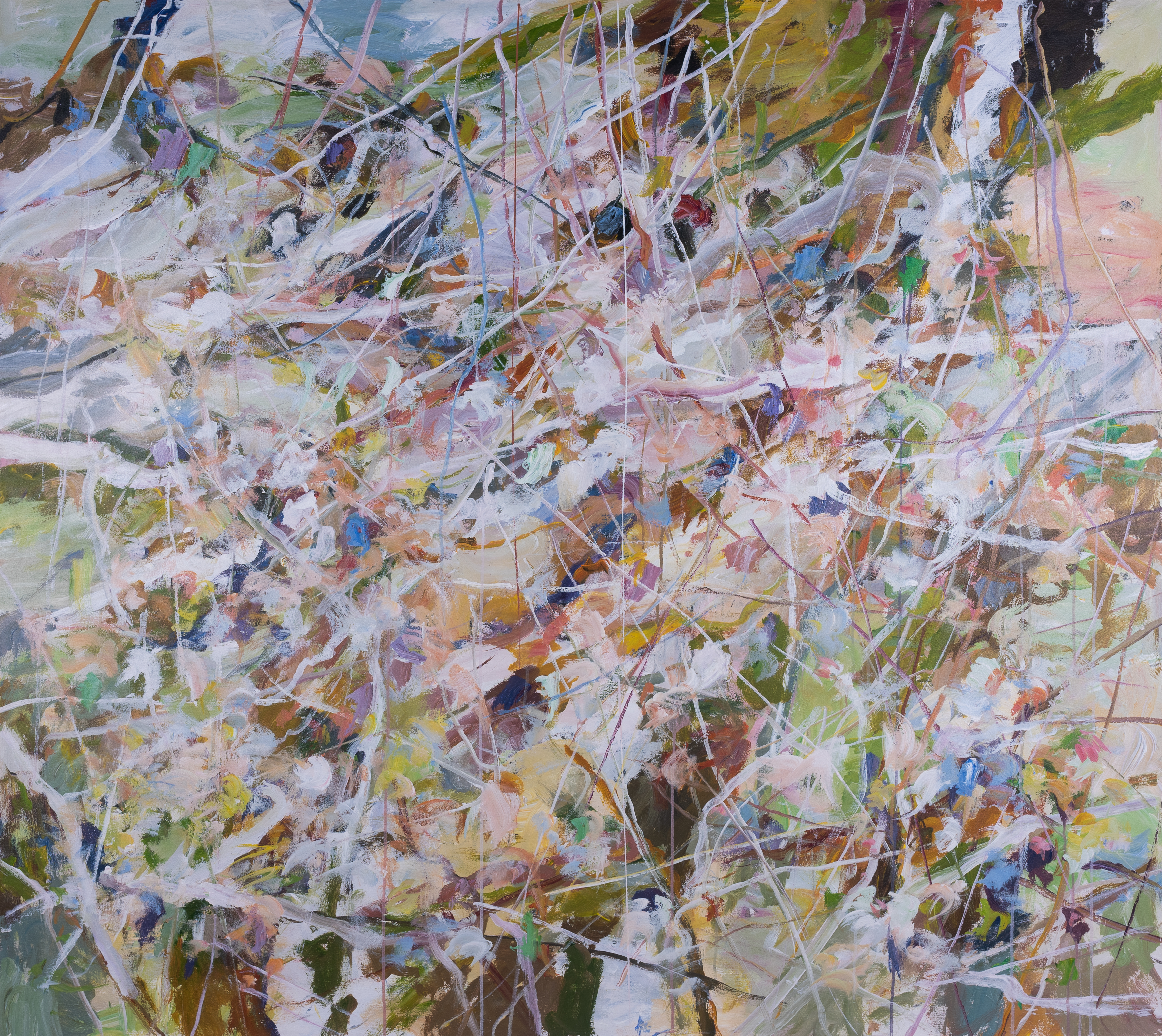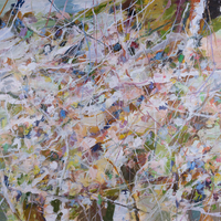 - abstract splashes of green, yellow, and white.