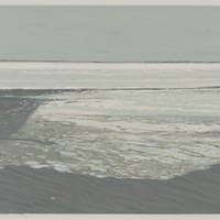 - muted abstracted landscape of grey and blue.