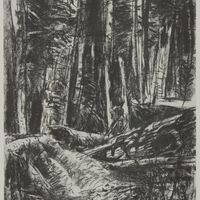 - black and white drawing of the forest.