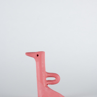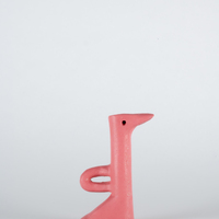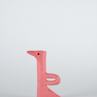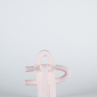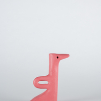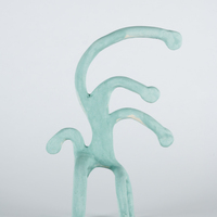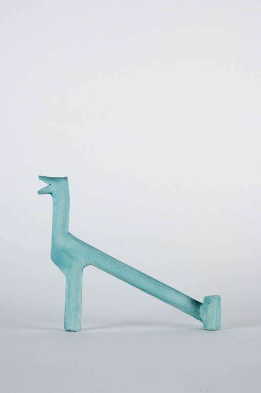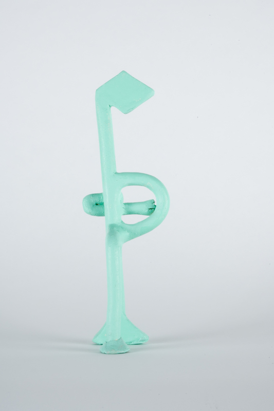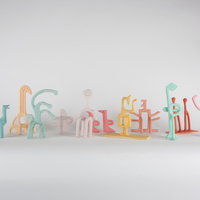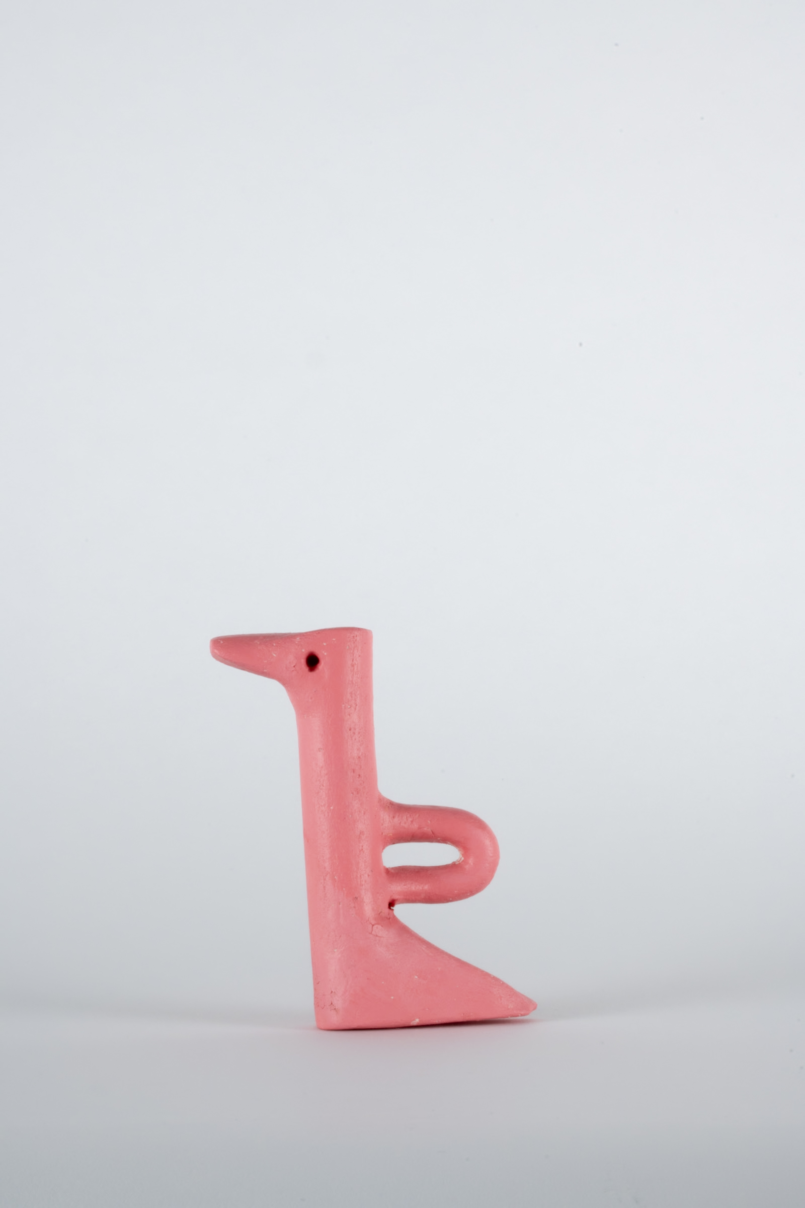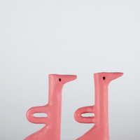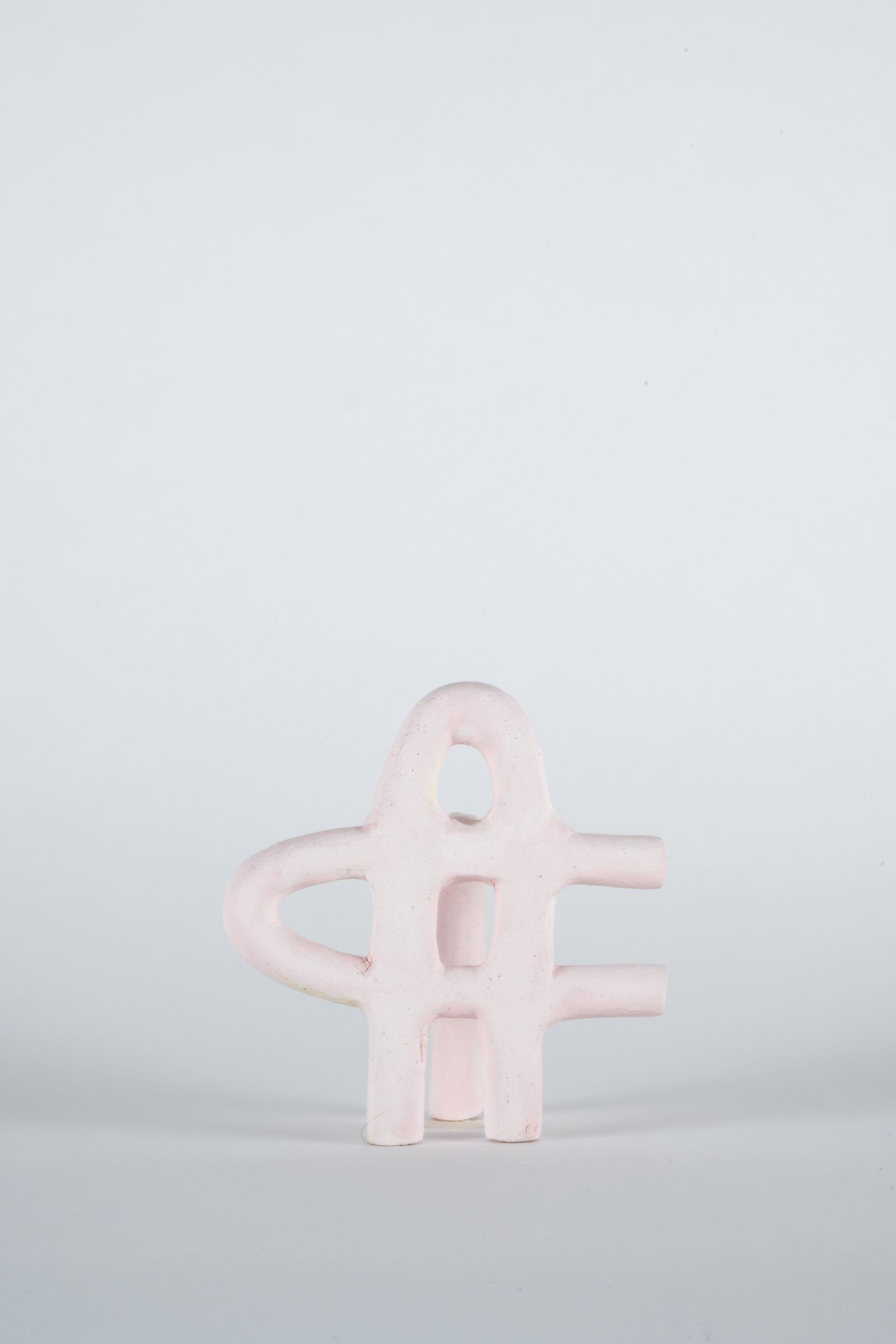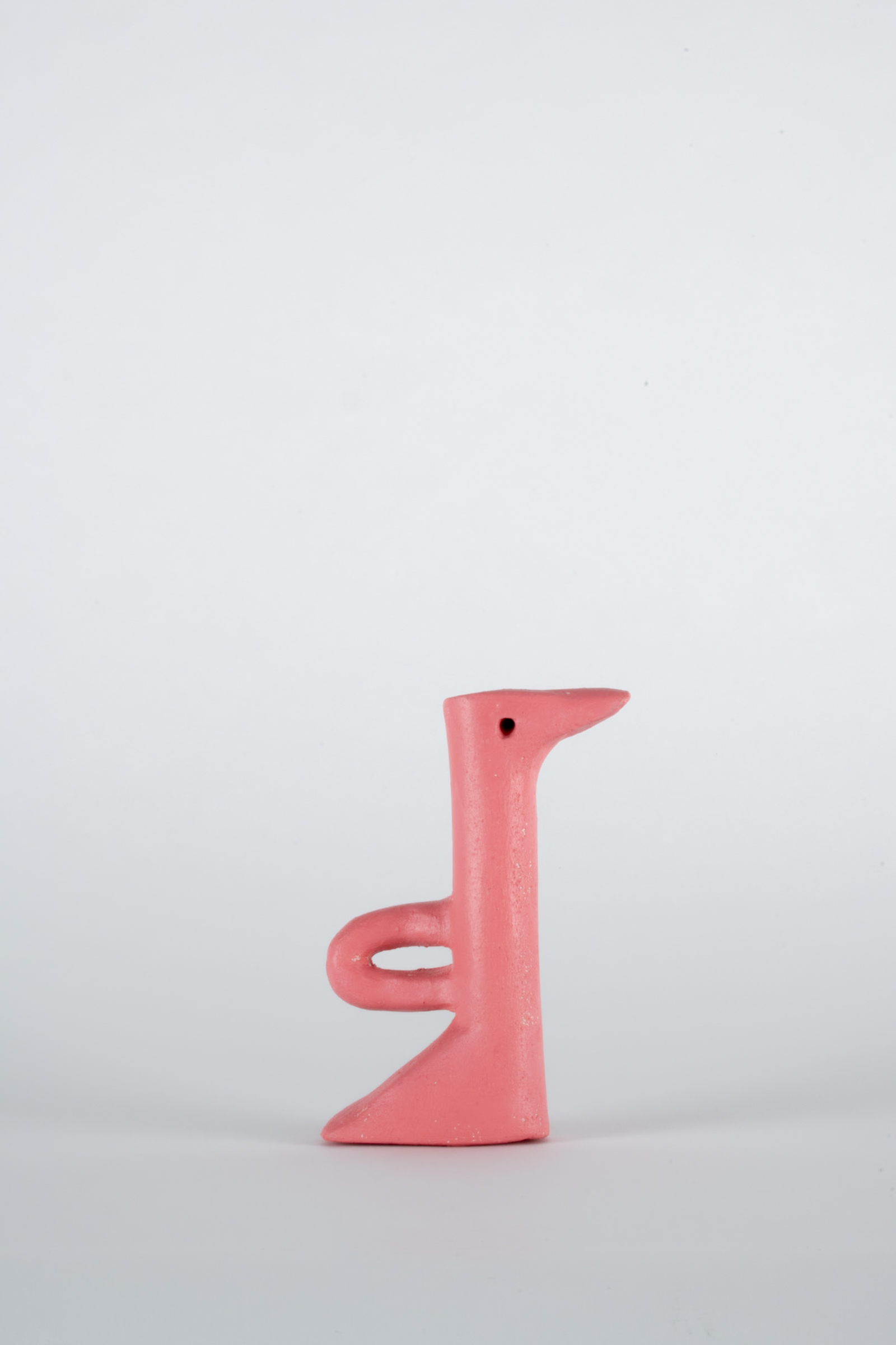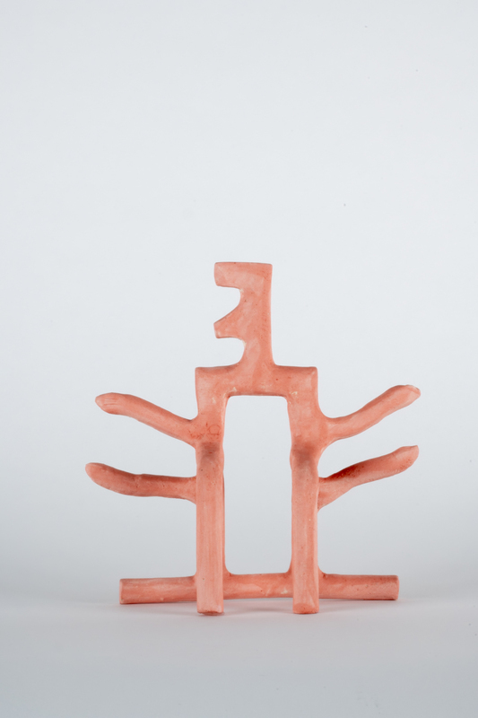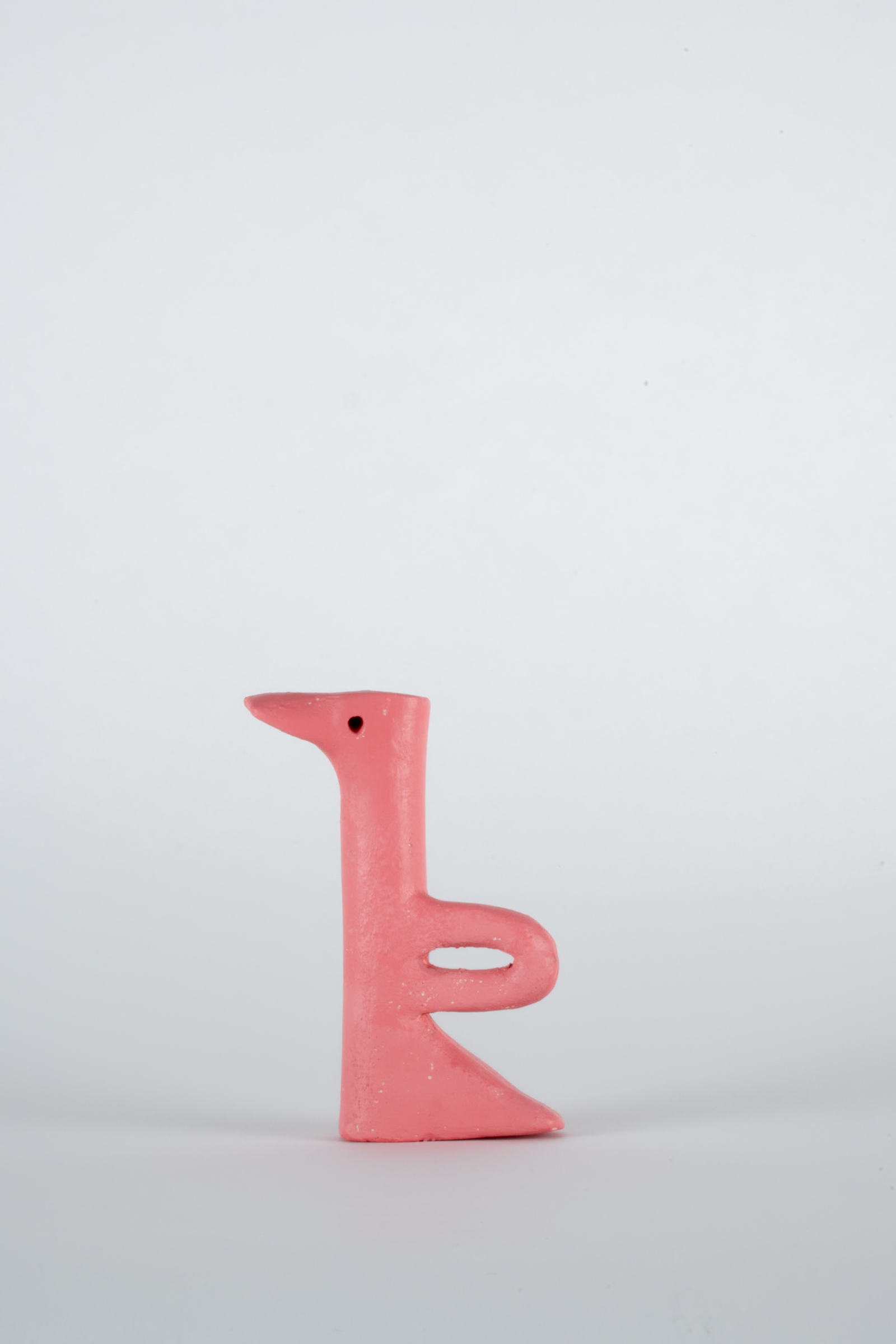 Ceramic figurative sculptures in soft green, yellow, pink and orange.
