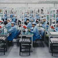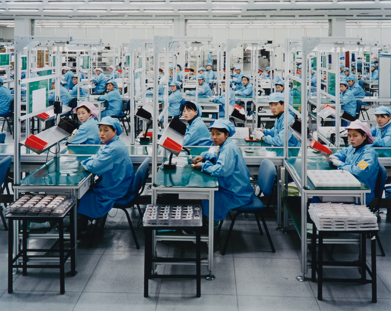 image of factory workers in China looking at the camera