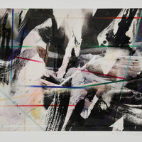 abstracted composition of multiple images superimposed on top of one another with multi-colour streaks on the white parts at the forefront.