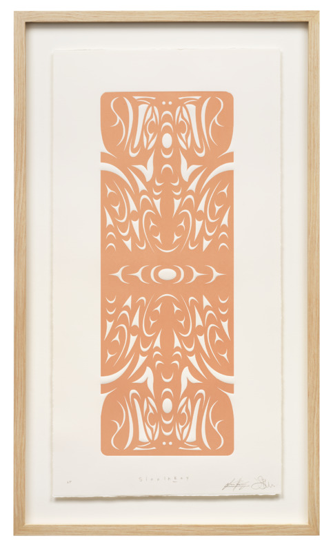 - Hand-printed embossed woodblock relief, serigraph, suspended copper pigment