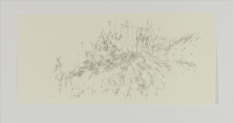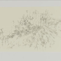 Drawing completed on September 7, 2017. Sketchy lines outline a set of hills and the sky.