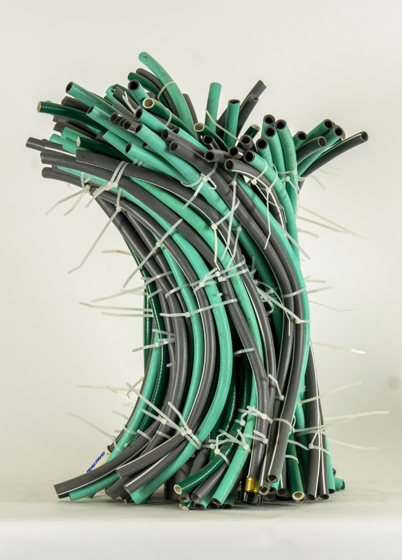 - abstract sculpture made from rubber hoses, cable ties, and steel