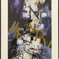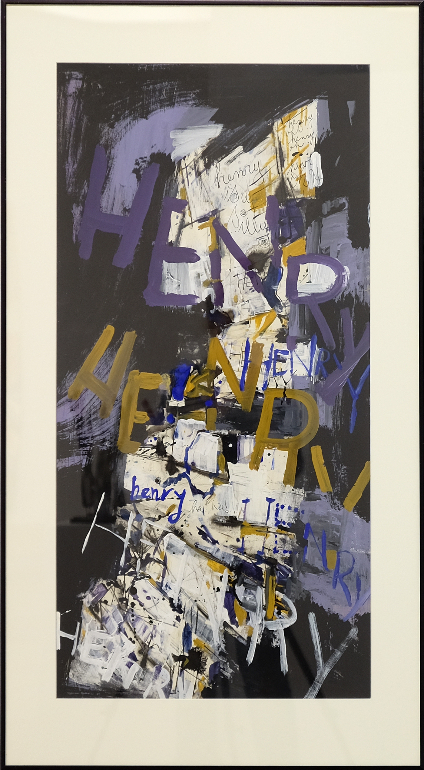text of an individual's name (Henry) rendered in purple and yellow against a black and white background.