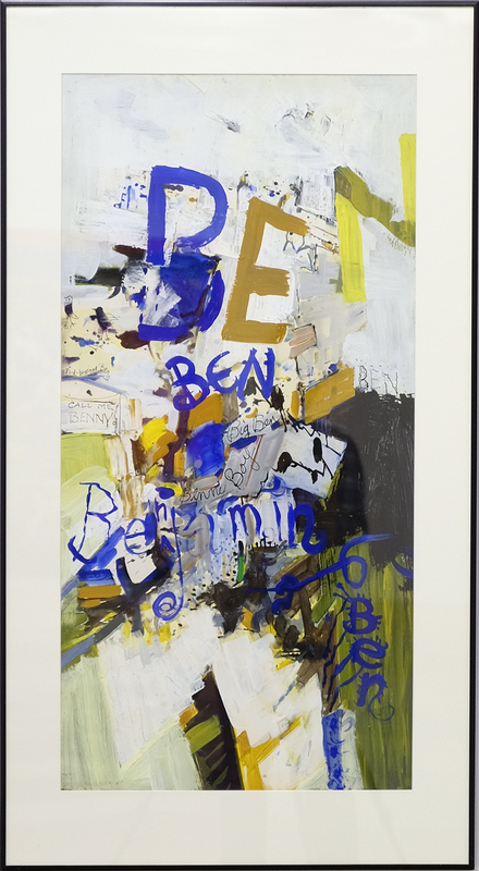 text of an individual's name (Ben) rendered in blue and yellow against a white and yellow background.